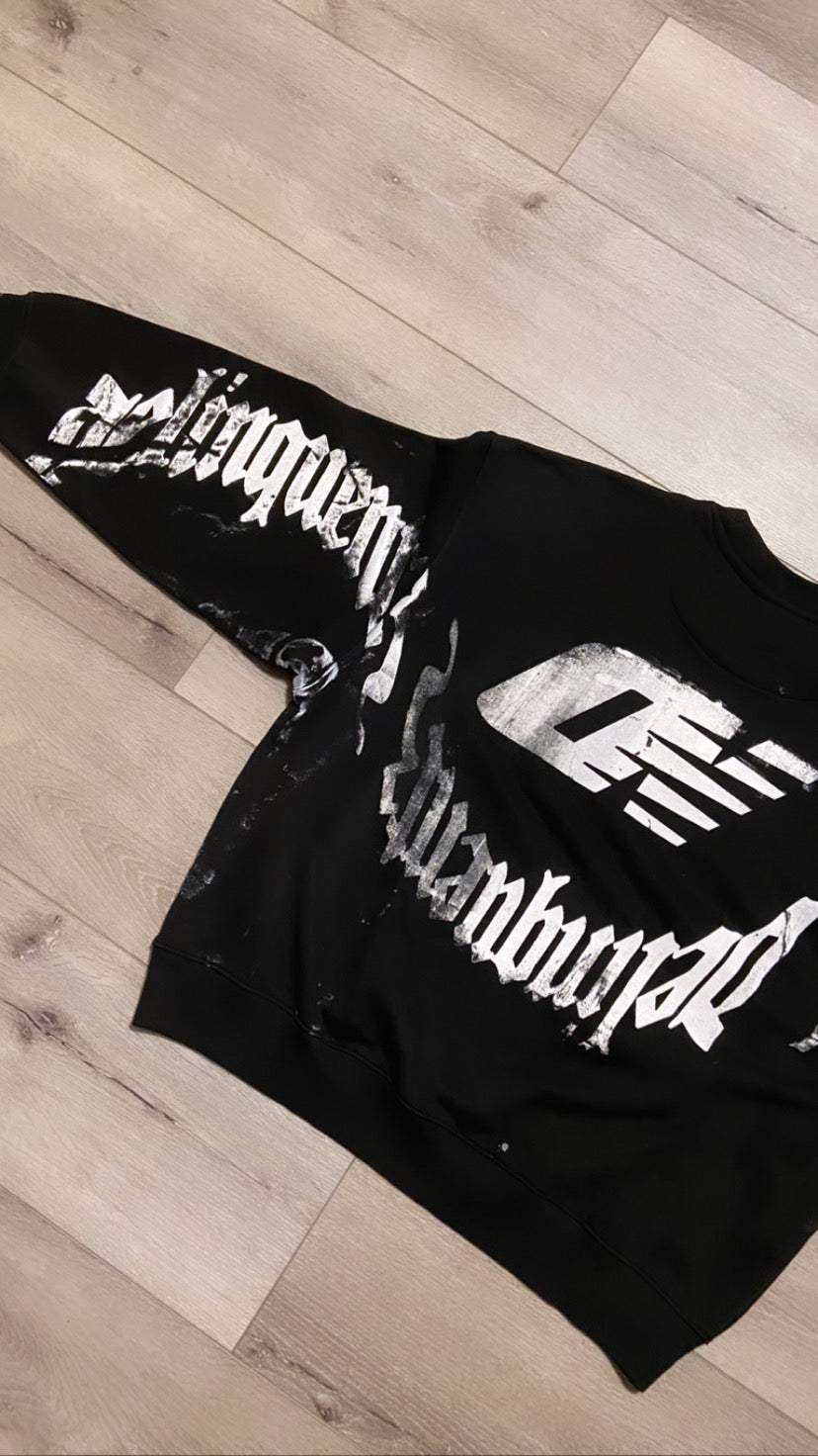 1 of 1 Hand screen printed on a heavy sweatshirt (460 GSM) This sweatshirt features cotton fabric with a relaxed silhouette and boxy, oversized fit for comfort. Crew neck, heavily dropped shoulders, long sleeves, and ribbing at neck, cuffs, and hem.